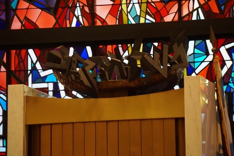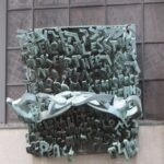 Bronze Ark doors with lettering.